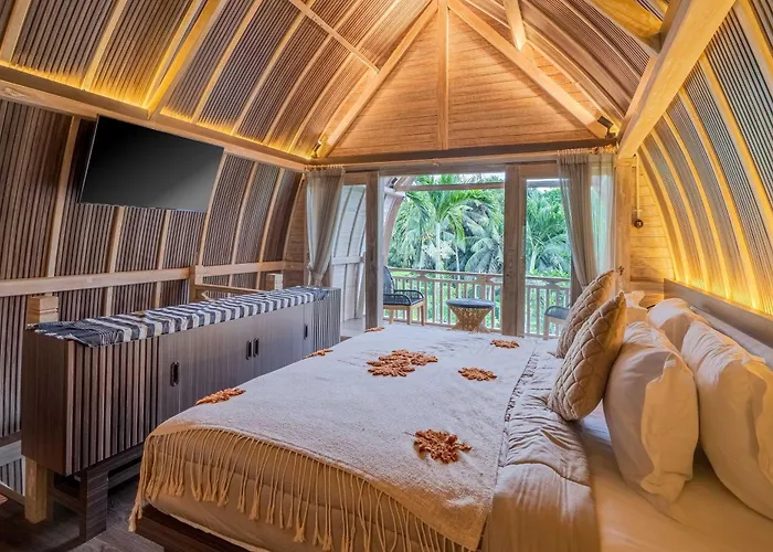 Bukit Campuhan en IB Oka Mask Gallery liggen binnen 4 km van en op 500 meter van dit hotel. De Bali Zoo, op 6 km afstand, is beslist een must voor gezinstoeristen in Ubud. Tot de nabijgelegen opmerkelijke religieuze gebouwen behoort de Gunung Lebah tempel, op 10 minuten rijden tot Villa Rimba By Serenity Property Ubud. De KSP Citra Buana bushalte is in de buurt van dit hotel.